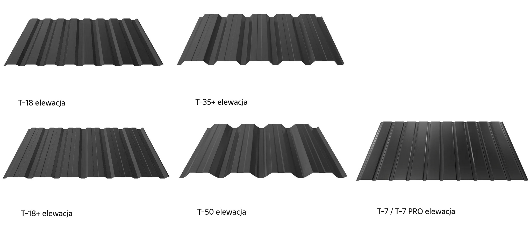 Do małych i średnich obiektów polecamy blachy trapezowe o profilu: T14 plus, T18, T18 plus, T20 plus, T35 plus, T50. Blach T50 stosowana jest w przypadku dużych obiektów usługowych np. hal produkcyjnych.